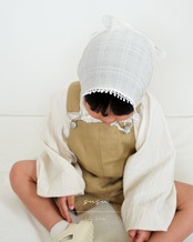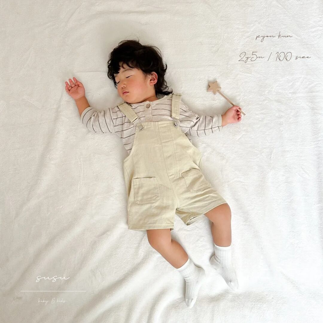 年中着ていただけるデニム素材のロンパース